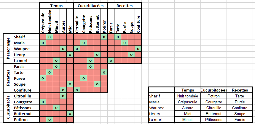 | Shérif | Nuit tombée | Potiron | Tarte |